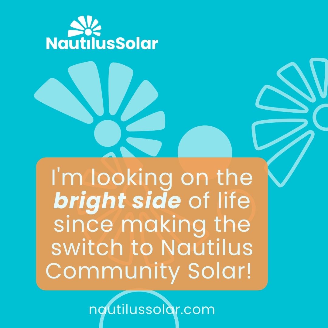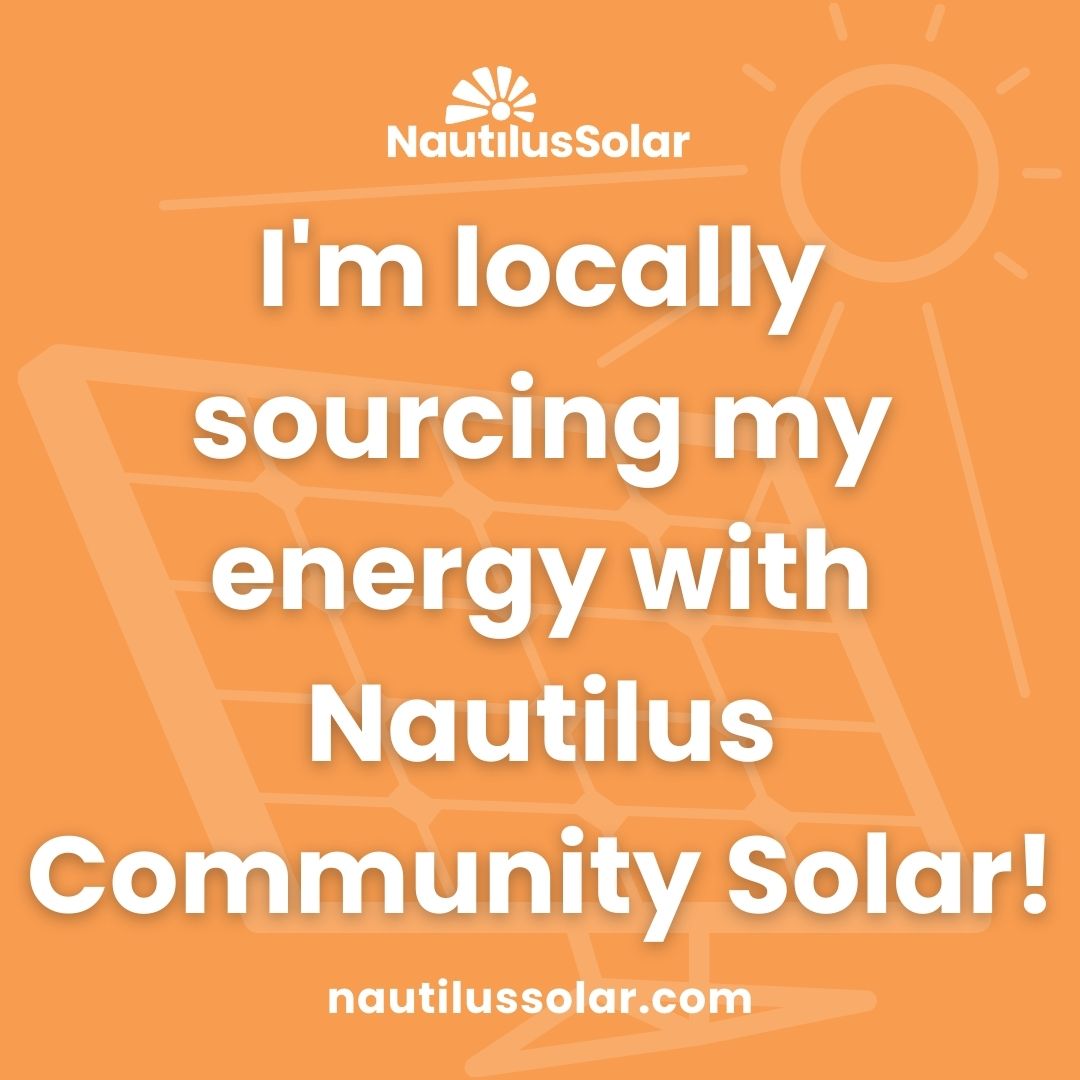 "I'm locally sourcing my energy with Nautilus Community Solar. It feels good to choose clean energy & reduce my carbon footprint."